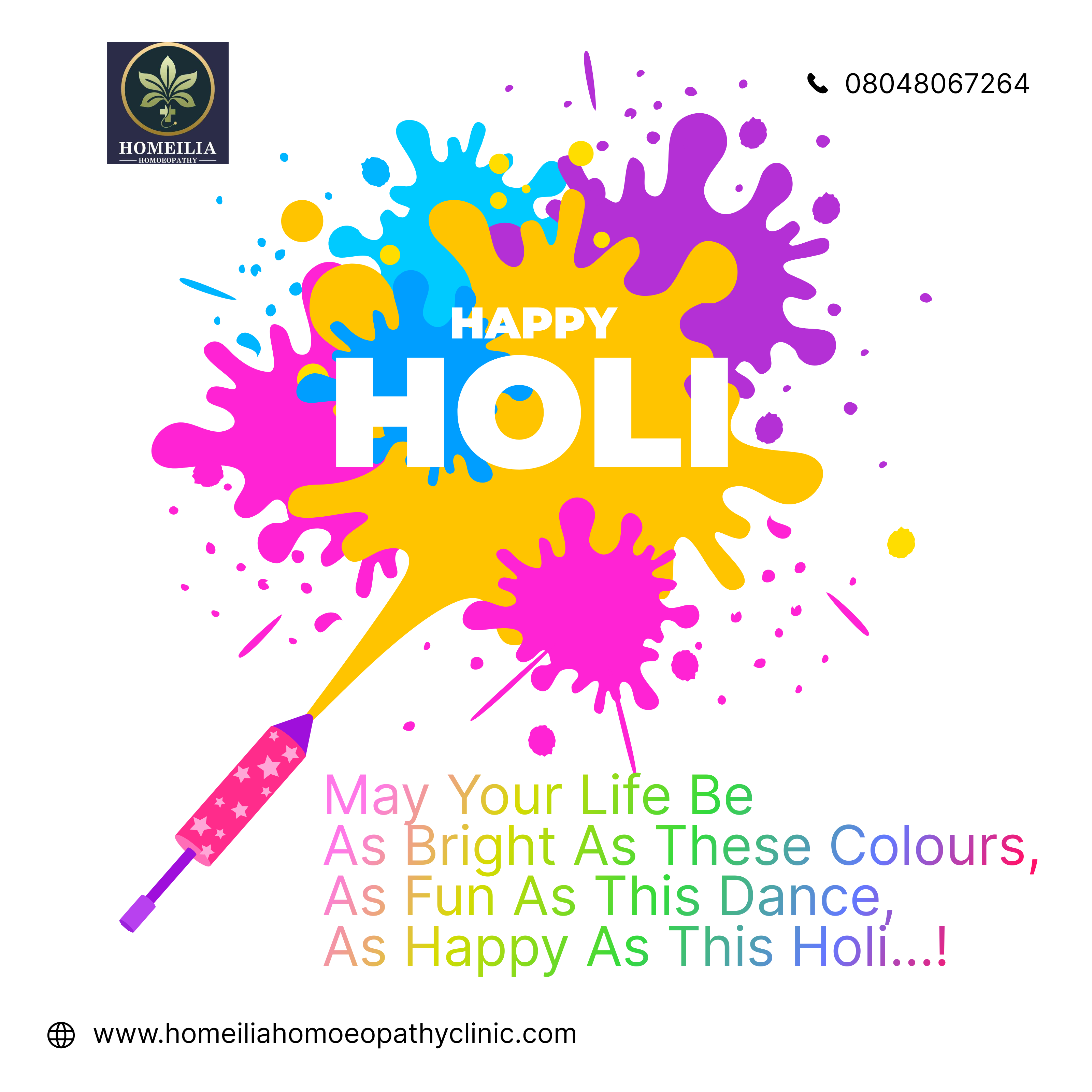 π¨πΈ May the colors of Holi wash away worries and fill your life with smiles and success. Wishing you a bright and joyful Holi 2026! β¨ #Holi2026 #HappyHoli #FestivalOfColors #PositiveVibes #JoyAndHappiness #ColorfulLife #IndianFestivals #CelebrateHoli